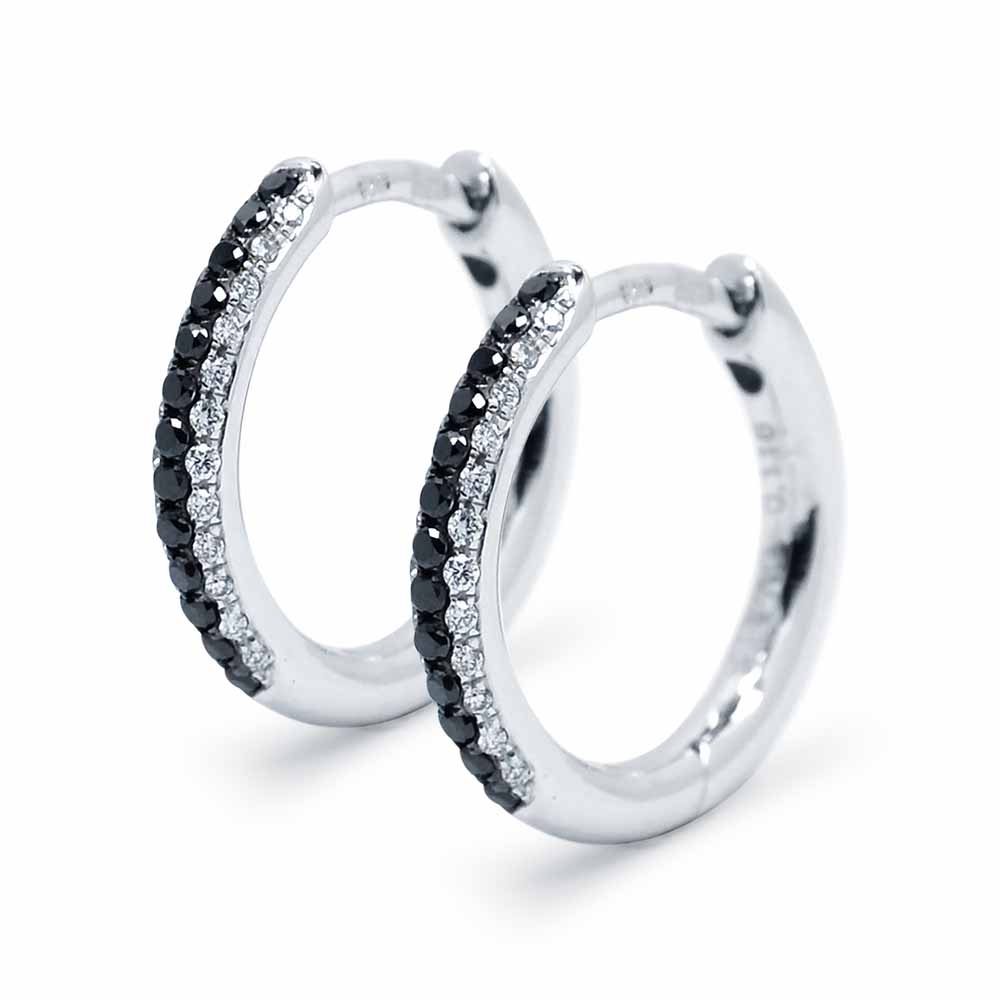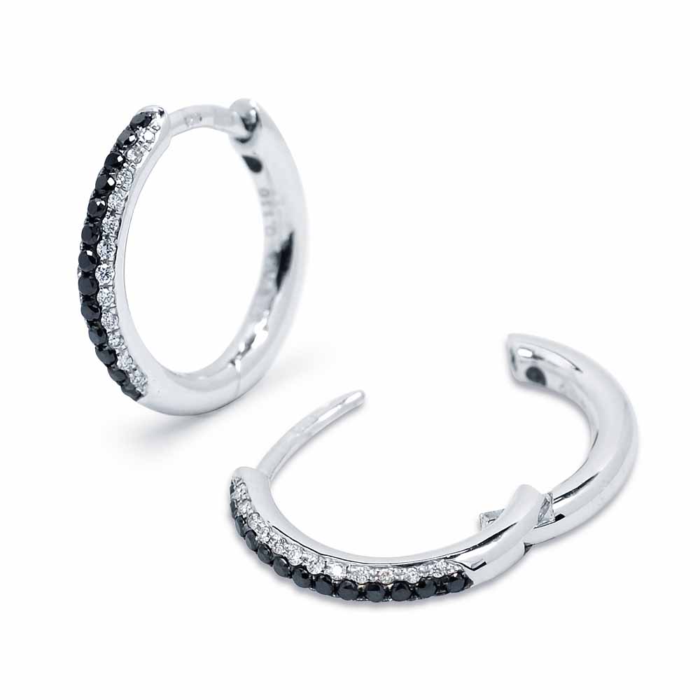 Fekete és fehér gyémánt karika fülbevaló - 0,26 karát
