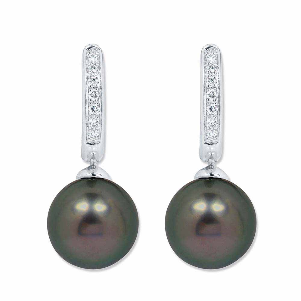 White & Black Classics: Tahiti Gyöngy Fülbevaló 8-8,5mm-es Igazgyöngyökkel és Gyémántokkal