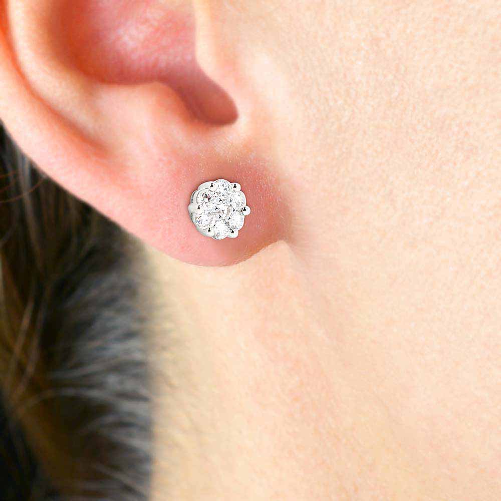 0,98 karátos virág formájú gyémánt fülbevaló, 18K fehéraranyból, 7-7 darab briliánssal