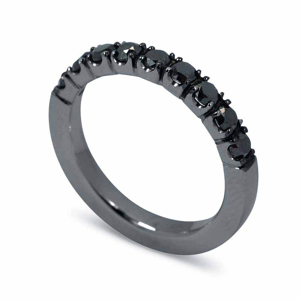 2,5mm-es fekete gyémántokkal félig körbe foglalat gyűrű 14 karátos, fekete ródium bevonatú fehéraranyból