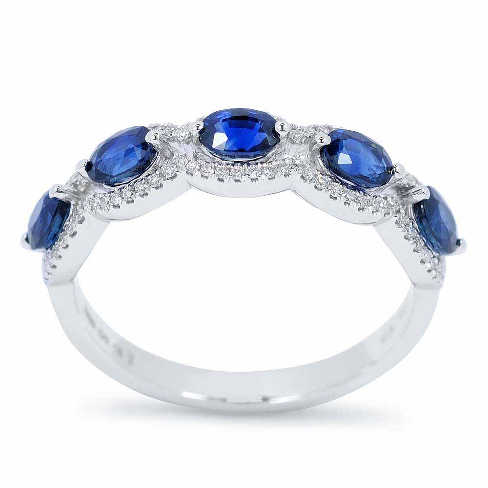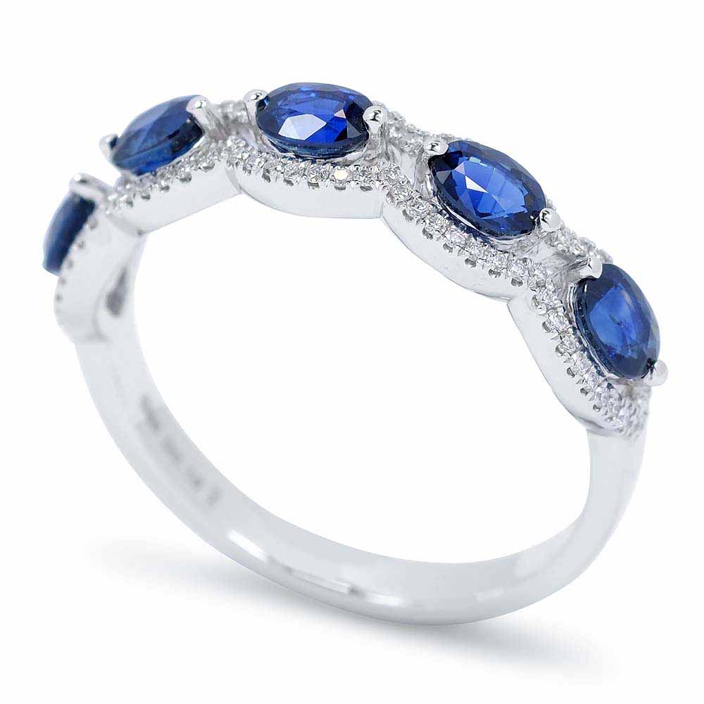 Sorköves gyűrű 5 darab ovális formára megcsiszolt kék zafír kővel sorban kirakva. A zafírok mélykék árnyalatban pompáznak, súlyuk összesen 1,35 karát. A kék ékköveket végig apró briliáns gyémántok szegélyezik, összesen 0,16 karátnyi. A gyűrű súlya 3,0 gramm. Itt olvashatsz a zafír gyűrűkről. Kérésre díjmentesen méretre igazítjuk 2-3 ujjméretet, nagyobb különbség esetén megrendelhető tetszőleges méretben. Jelenleg megrendelésre - előleg szükséges. Az ár az aktuláis árfolyamok függvényében változhat.