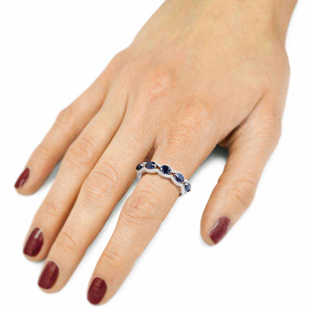 Ovál zafír soros gyűrű gyémántokkal - megrendelésre