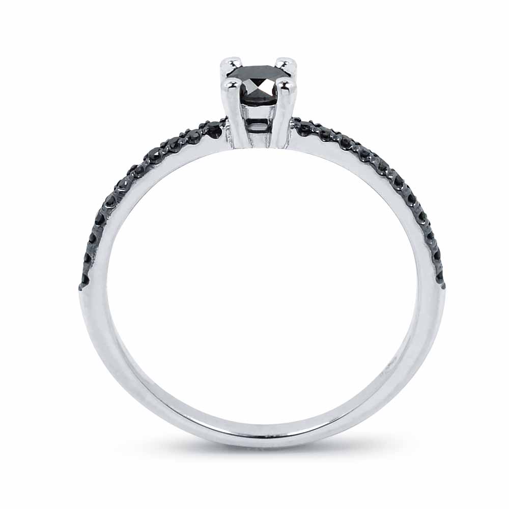 Fekete gyémánt eljegyzési gyűrű 14 karátos fehér aranyból készítve, az oldalában fekete briliánsokkal - 0,63 karát