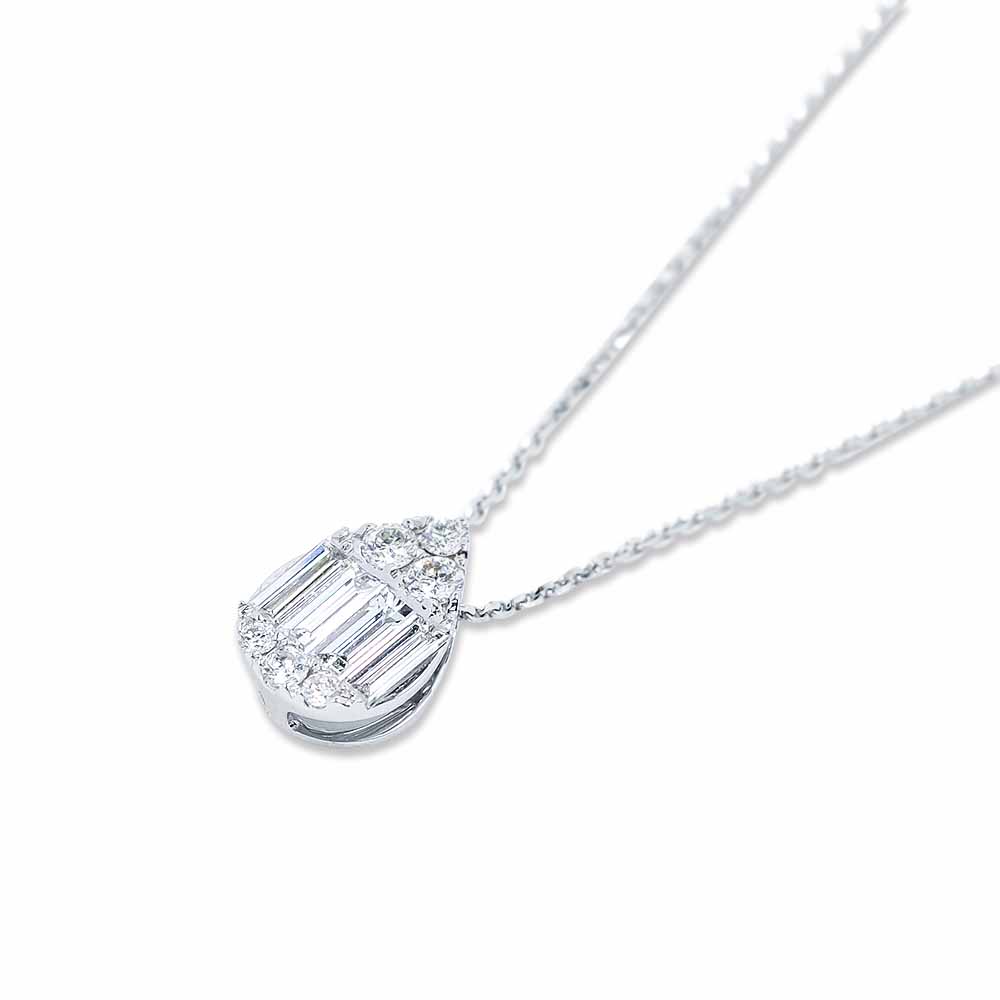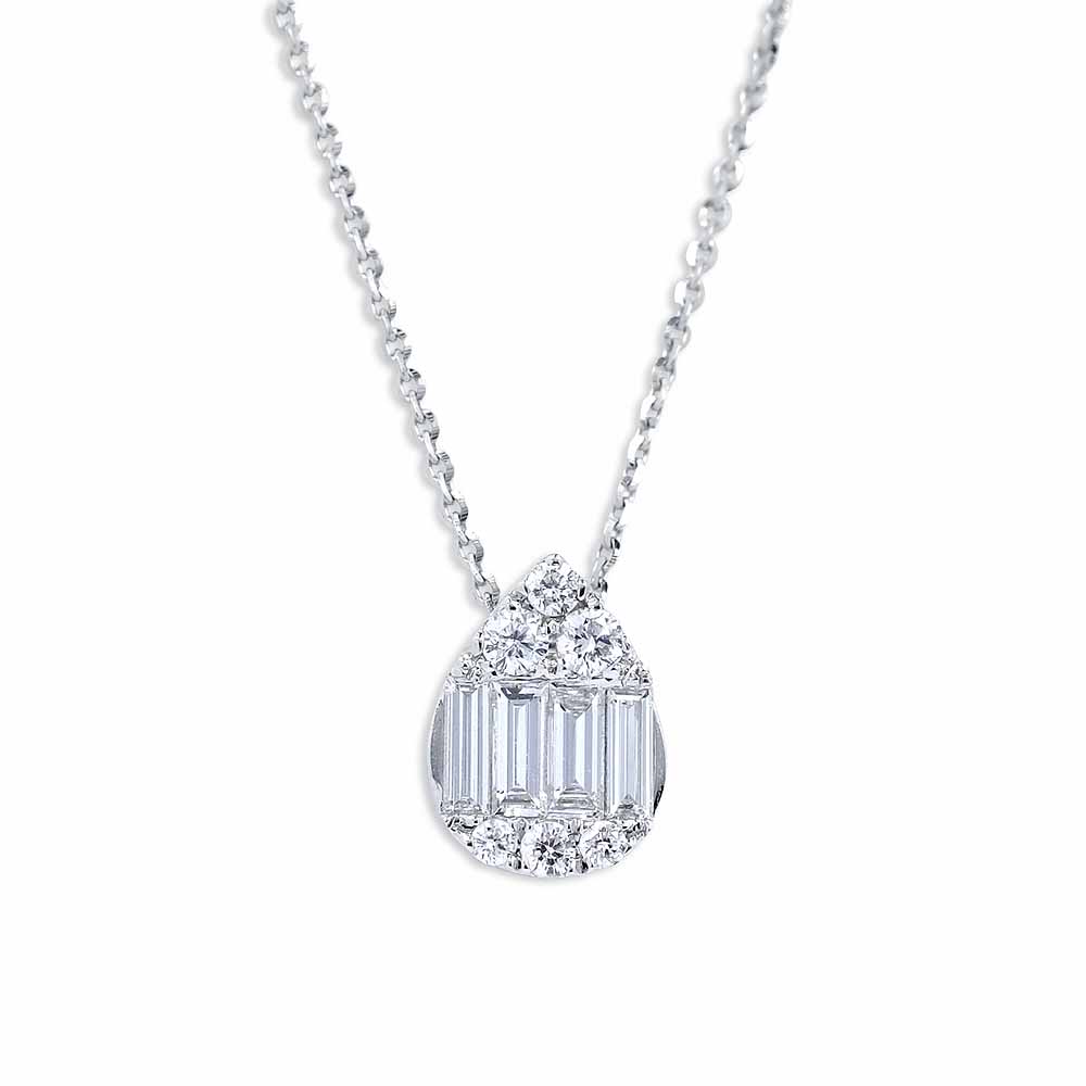 Csepp gyémánt medál kerek és hosszúkás valódi kövekkel díszítve, 18 karátos fehéraranyból