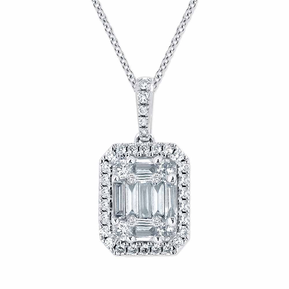 Bagett gyémánt medál kerek és hosszúkás valódi gyémánt kövekkel díszítve, 18 karátos fehéraranyból - 0,7 karát