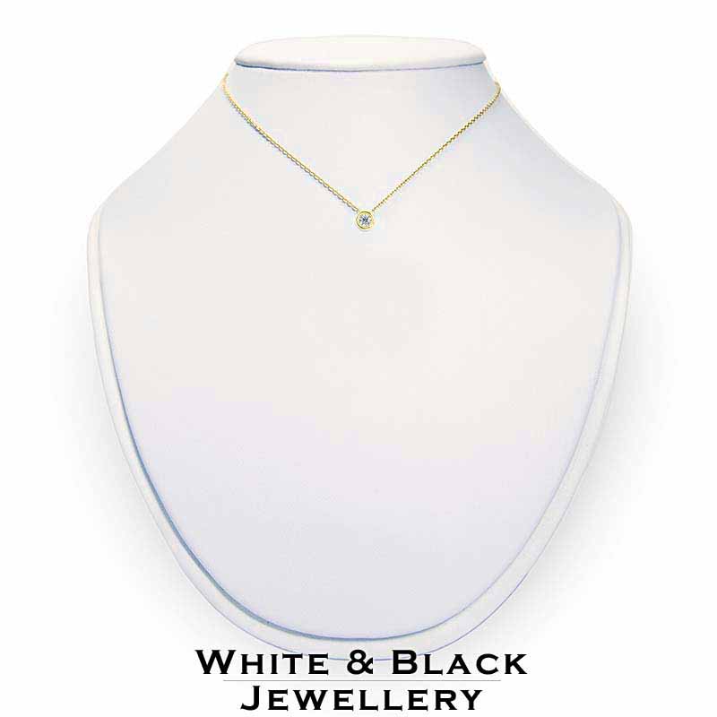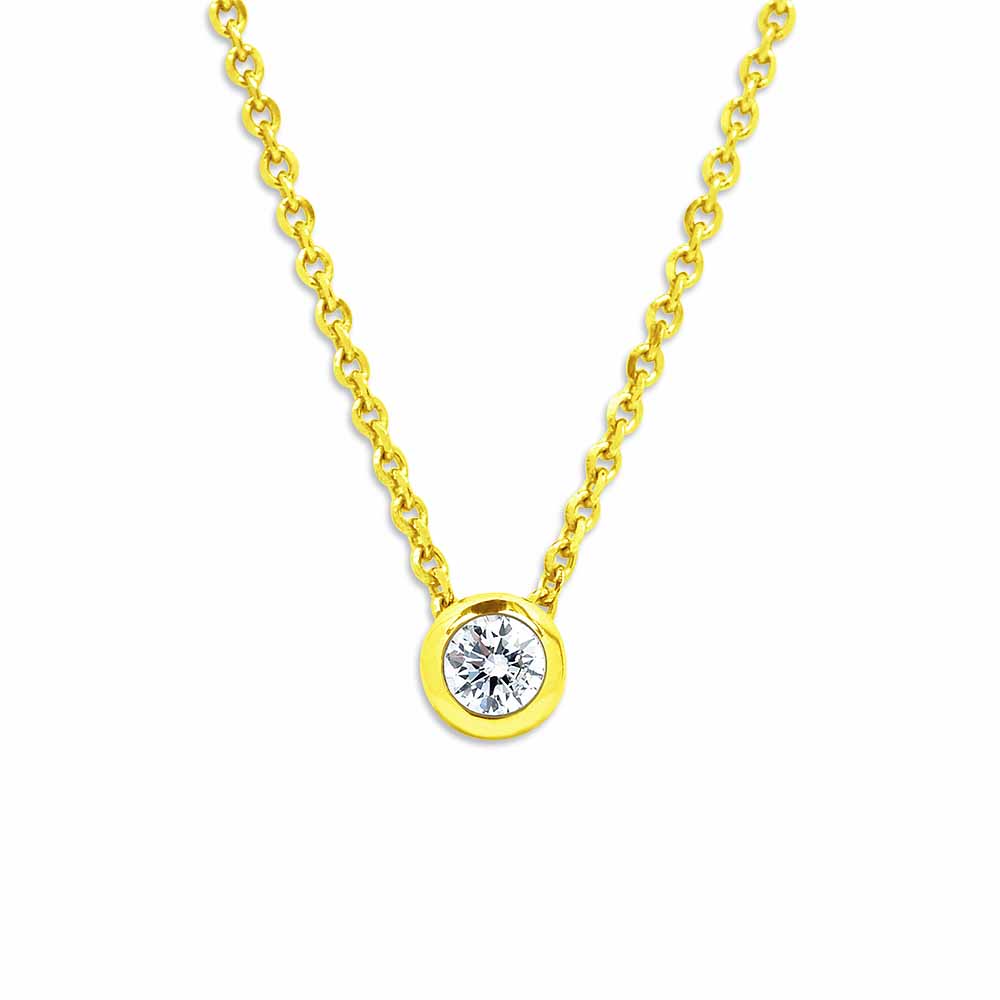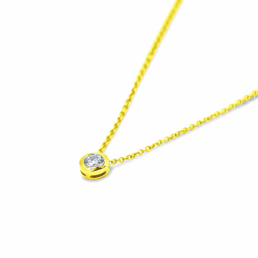 Kerek, zárt buton foglalatos gyémánt medál hozzá illő arany nyakláncra fűzve - 3,2mm - 0,126ct