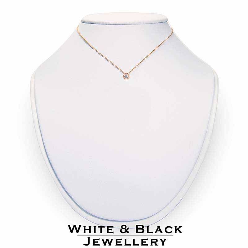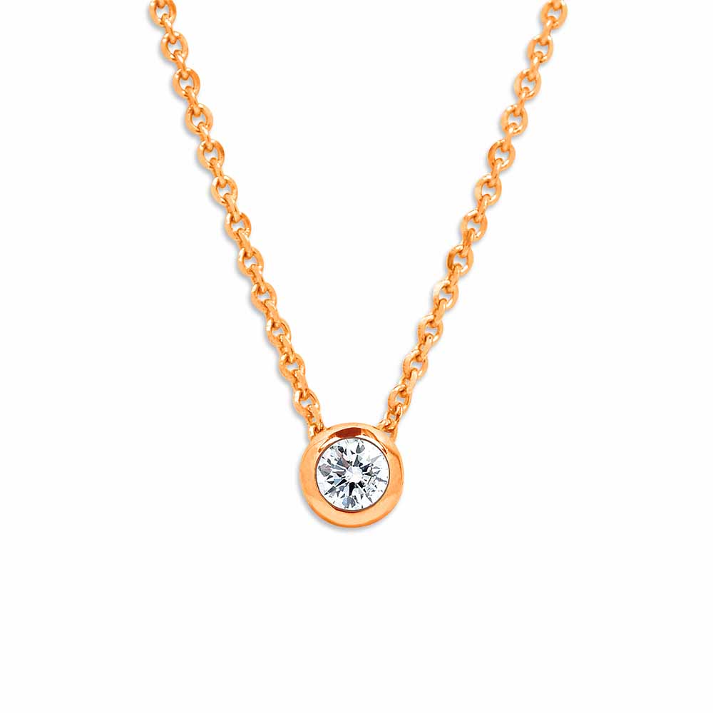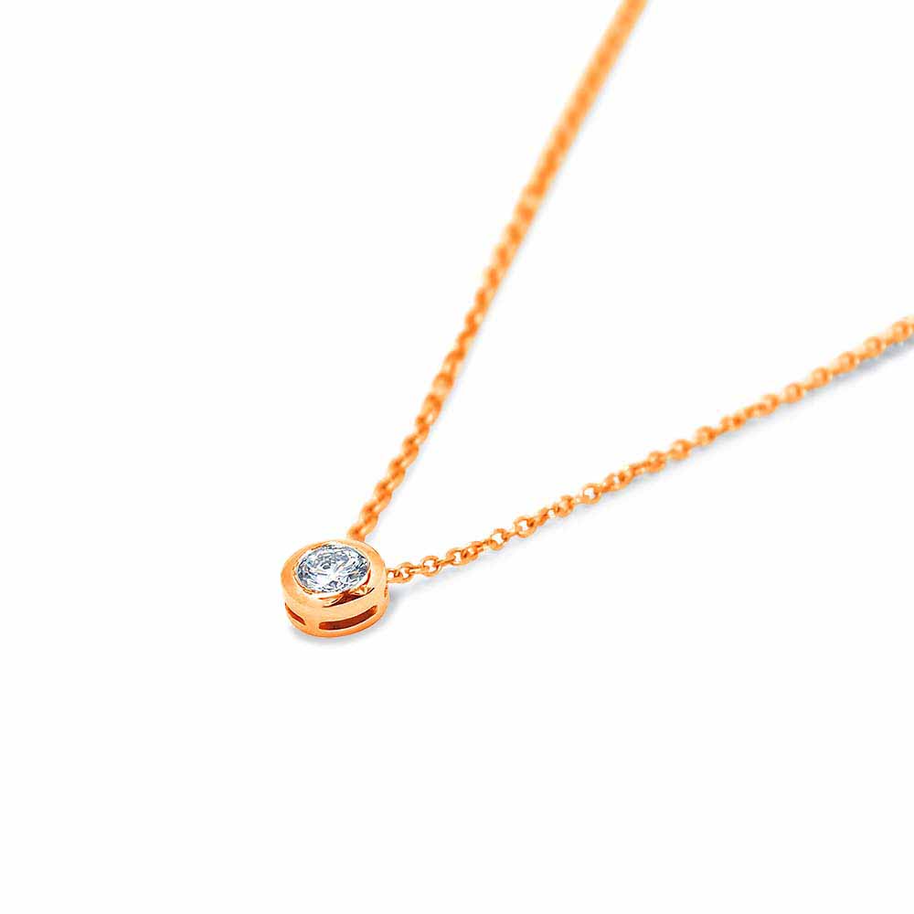 Kerek, zárt bouton foglalatos gyémánt medál hozzá illő rosegold nyakláncra fűzve - 3,2mm - 0,126ct