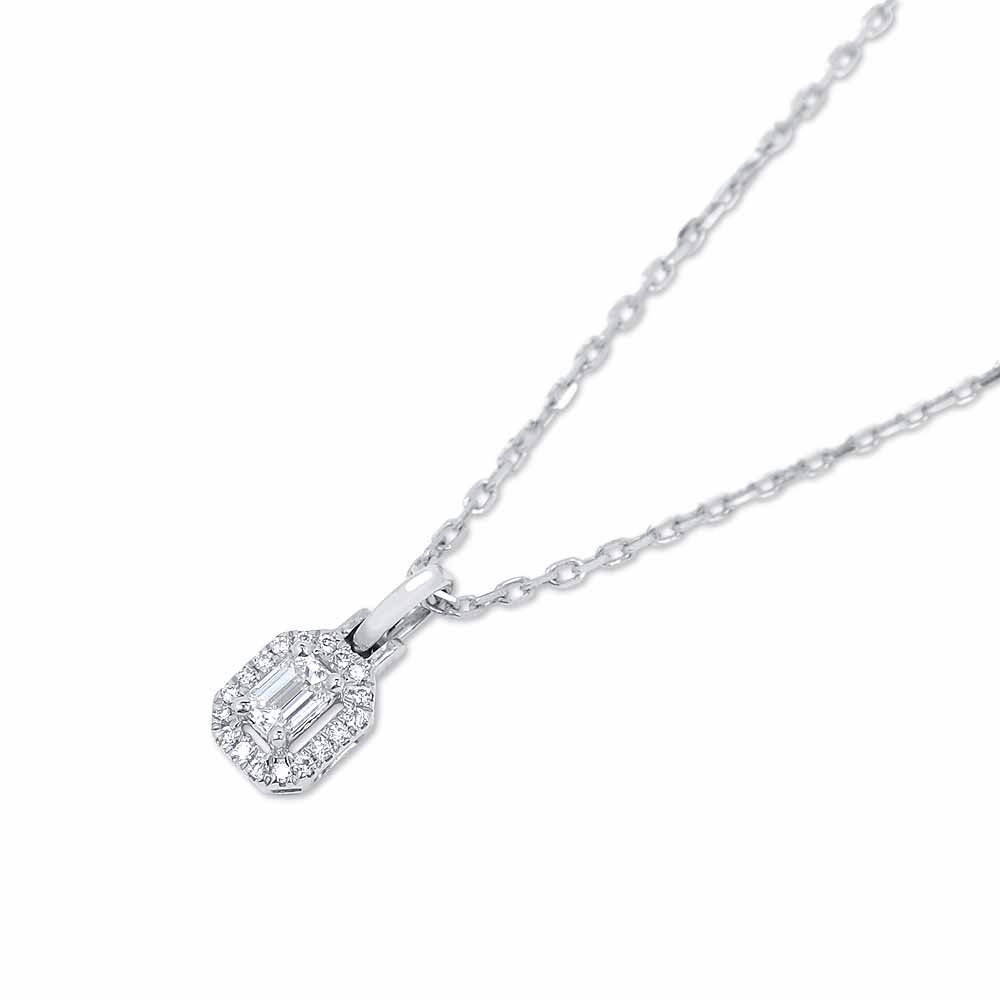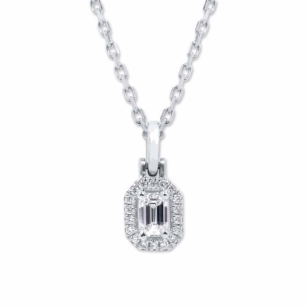 Emerald gyémánt medál középen hosszúkás formára megcsiszolt gyémánt kővel - 14K fehérarany