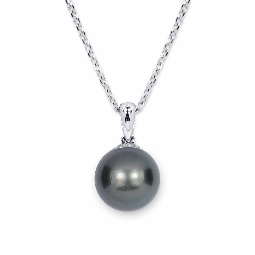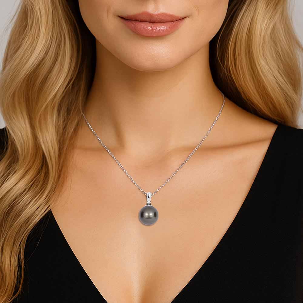 8,5-9mm-es sötét szürke tahiti gyöngy medál fehéraranyból, tetszőleges láncra fűzhető