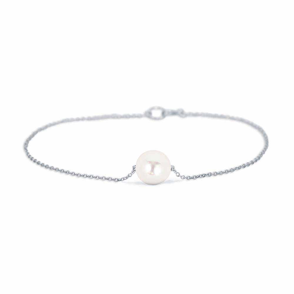 8-8,5mm-es kerek édesvízi gyöngy karlánc fehéraranyból, 17,5cm hosszban