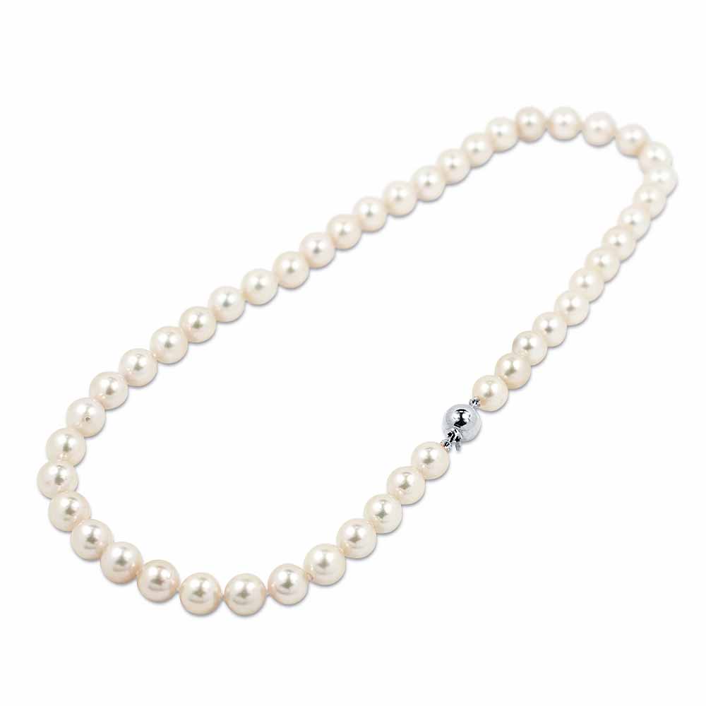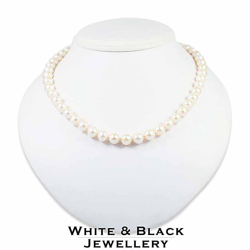 Fehér, szabályos kerek formájú 8-8,5mm-es édesvízi igazgyöngyökből fűzött sor ezüst zárral - 45cm