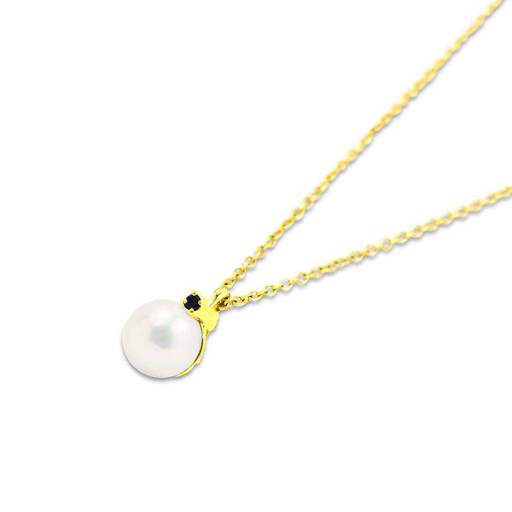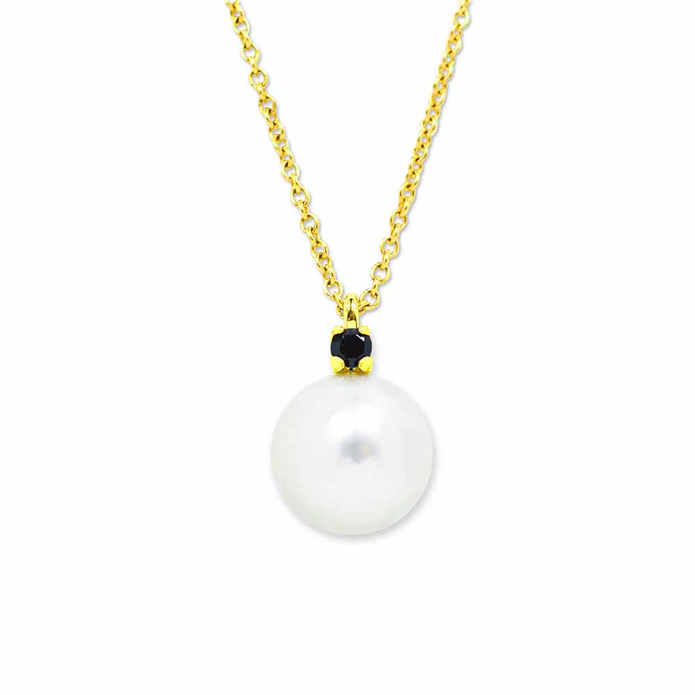 White & Black Classics: Arany Gyöngy Nyaklánc Fekete Gyémánttal - 6-6,5mm