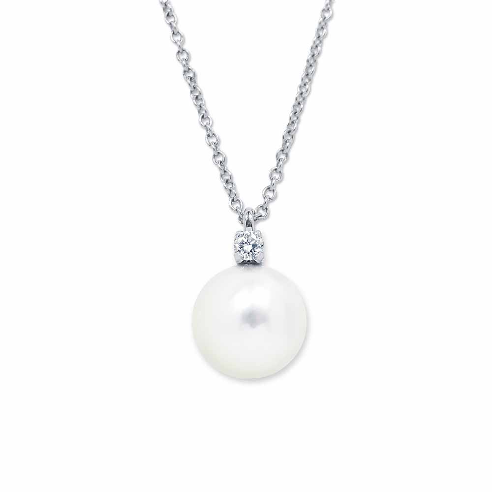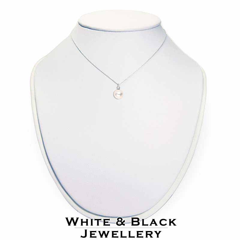 Fehérarany medál 6-6,5mm-es igazgyönggyel és gyémánttal foglalva, fehérarany láncon