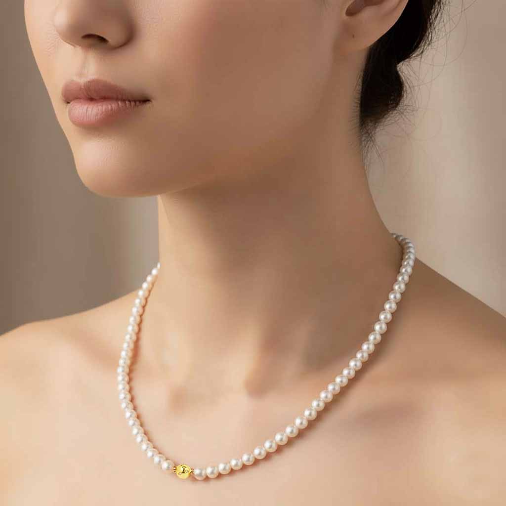 Sósvízi tenyésztett gyöngysor arany zárral - akoya 6,5-7mm - 60cm - AA