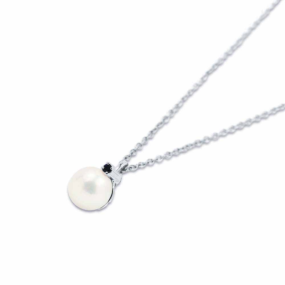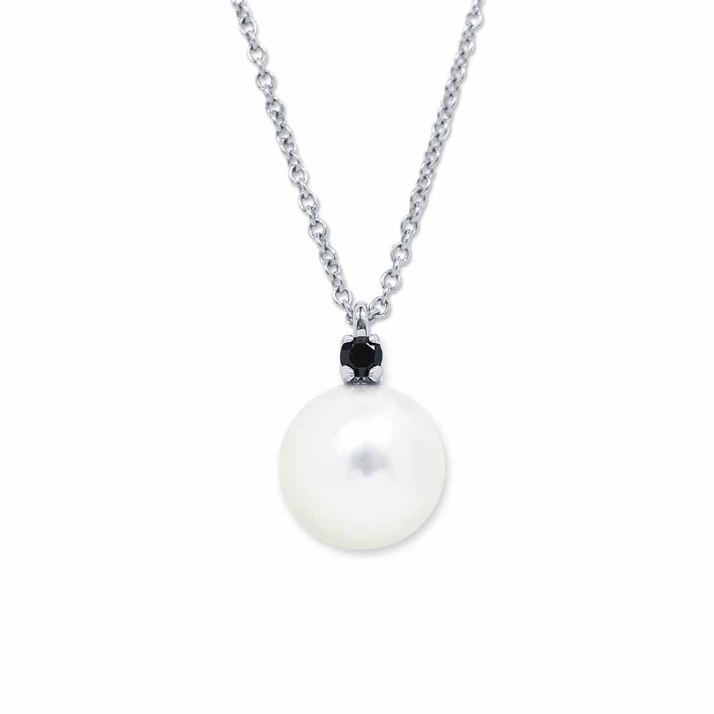 Fehérarany medál 6-6,5mm-es igazgyönggyel és fekete gyémánttal foglalva, fehérarany láncon