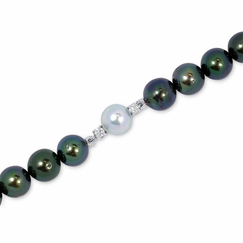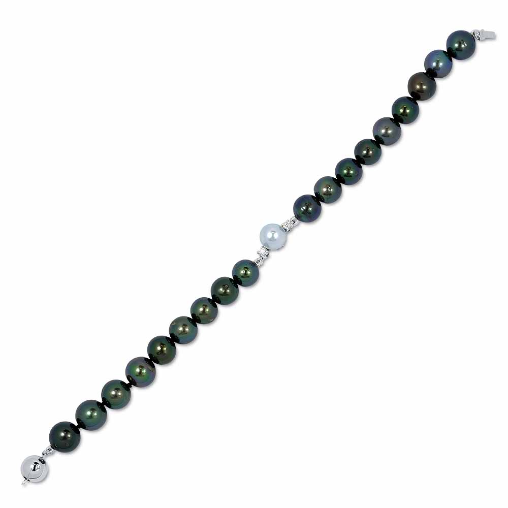White & Black Pearl: Tahiti Gyöngy Karkötő Gyémánt Dísszel
