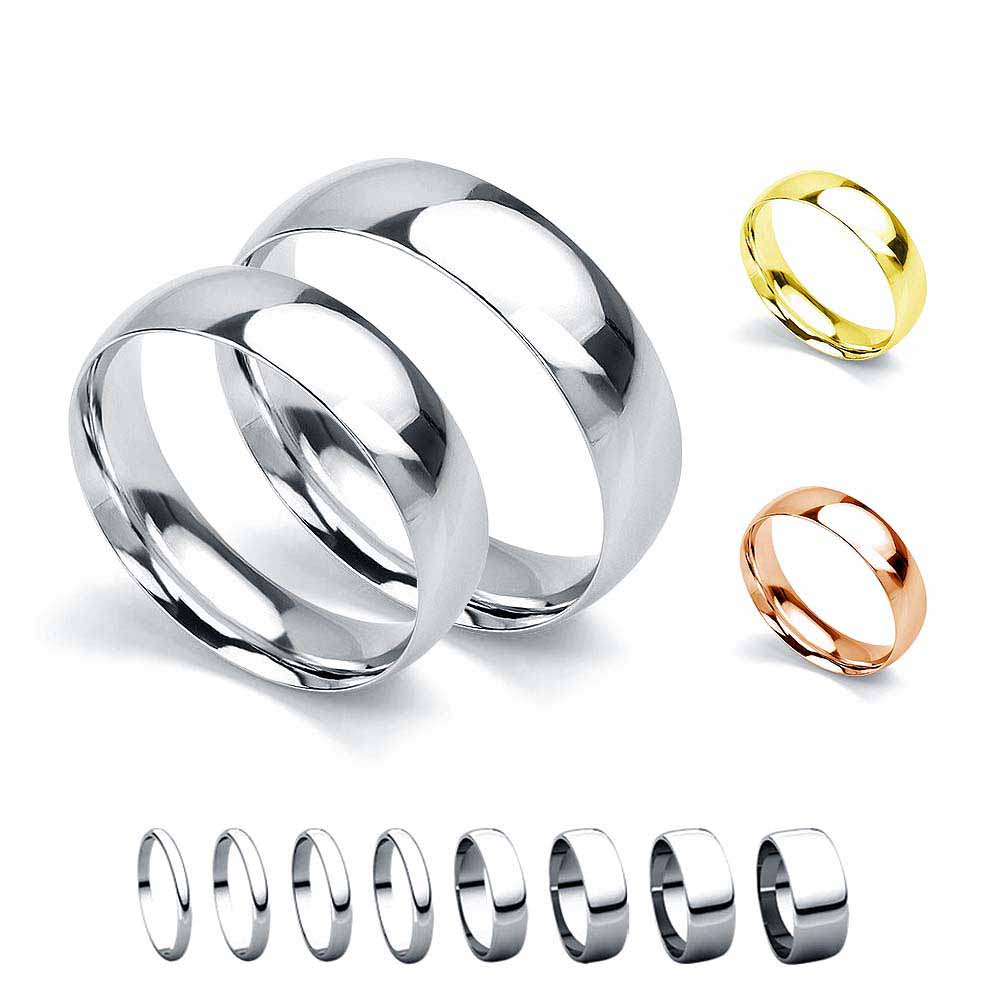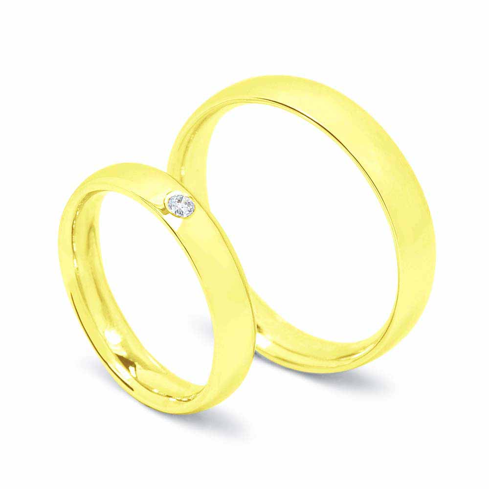 White & Black Wedding: Arany Karikagyűrű Pár választható Gyémánttal - Féldomború Profilú - Comfort
