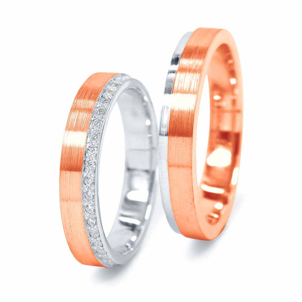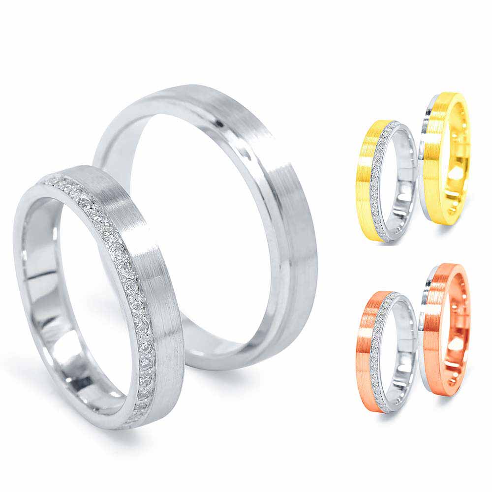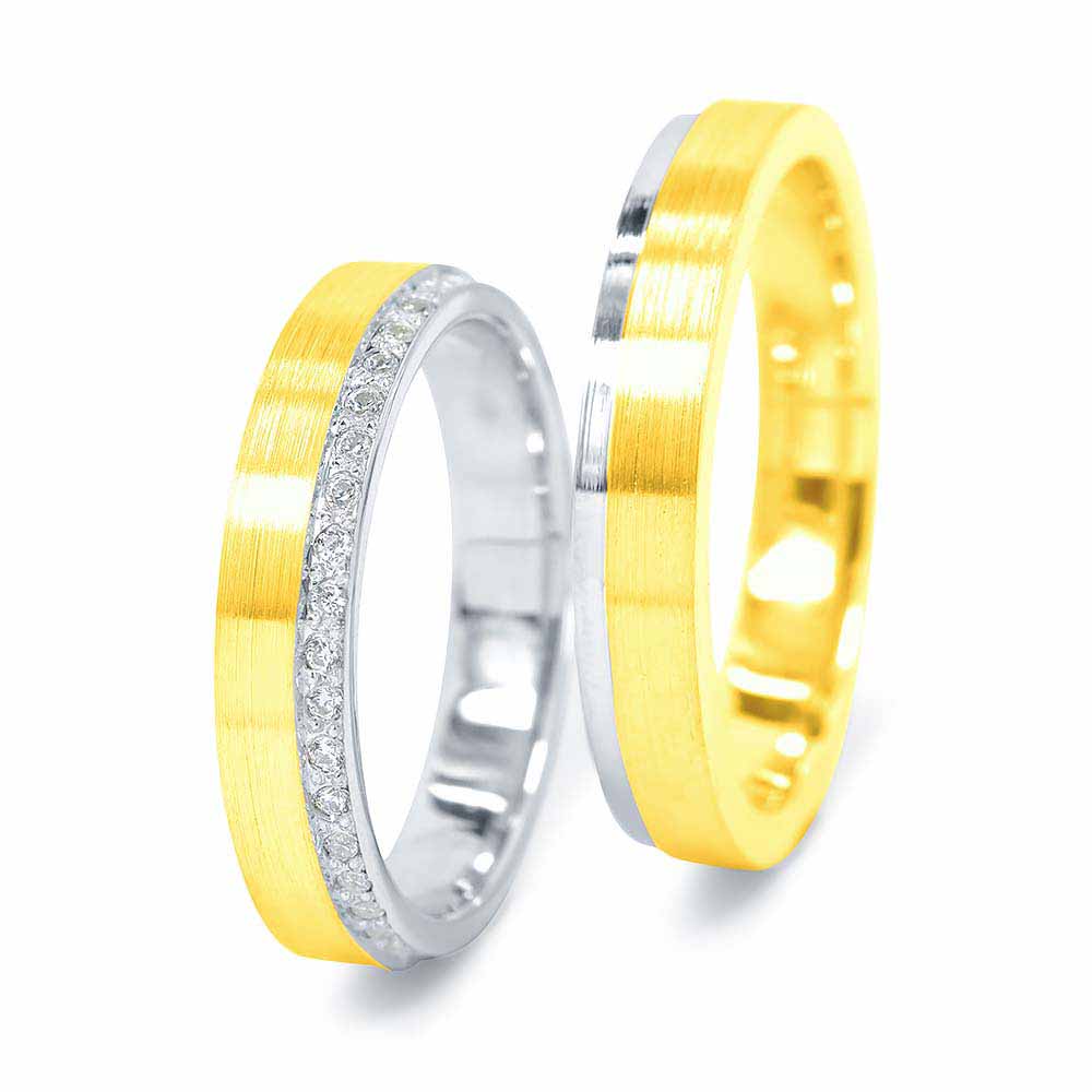 Körbe köves gyémánt karikagyűrű pár - szálcsiszolt - kétszínű