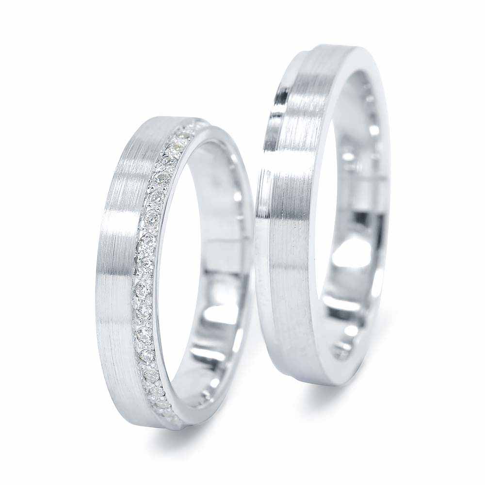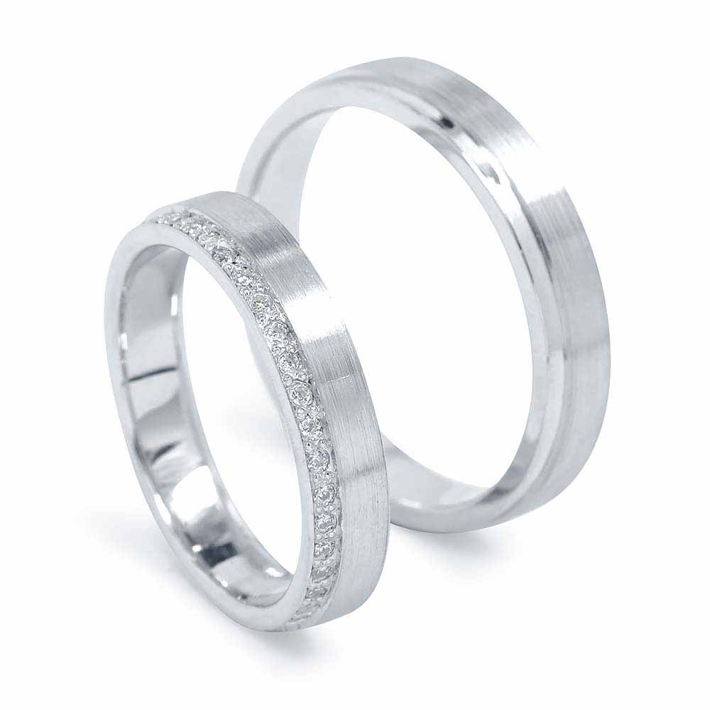 White & Black Wedding: Karikagyűrű Pár Aranyból - Körbe Gyémántokkal - Szálcsiszolt