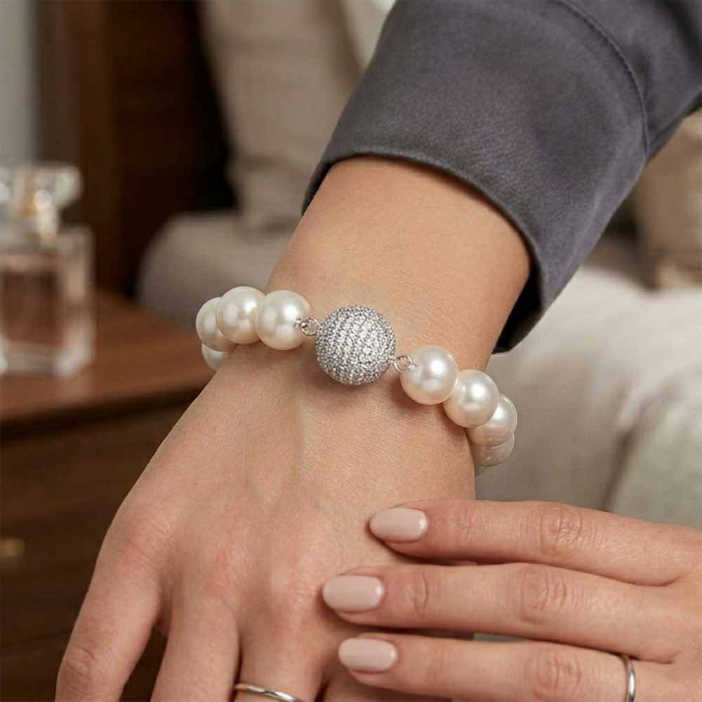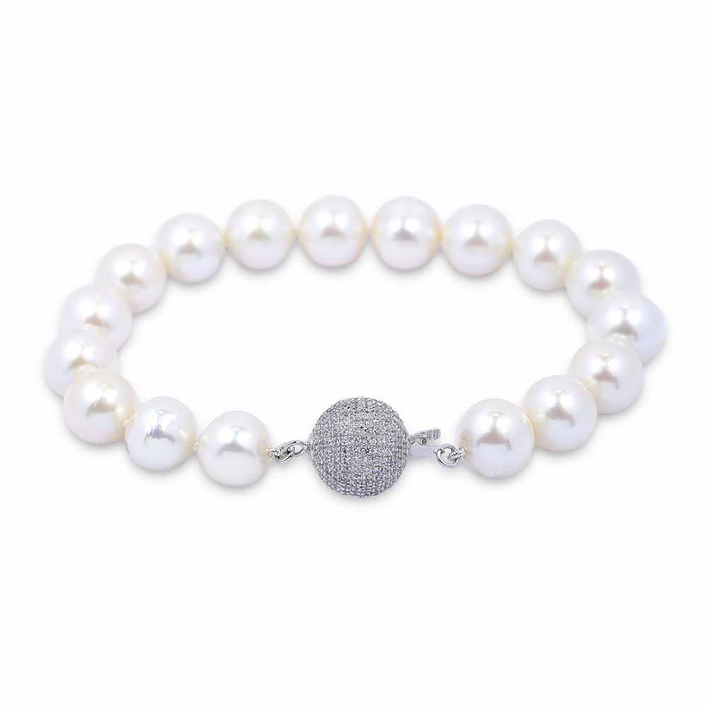 11mm-es édesvízi igazgyöngyökből fűzött karkötő csillogó kristályokkal díszített zárral, magas minőségű gyöngyökkel