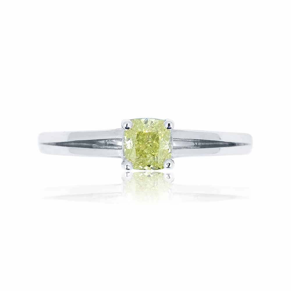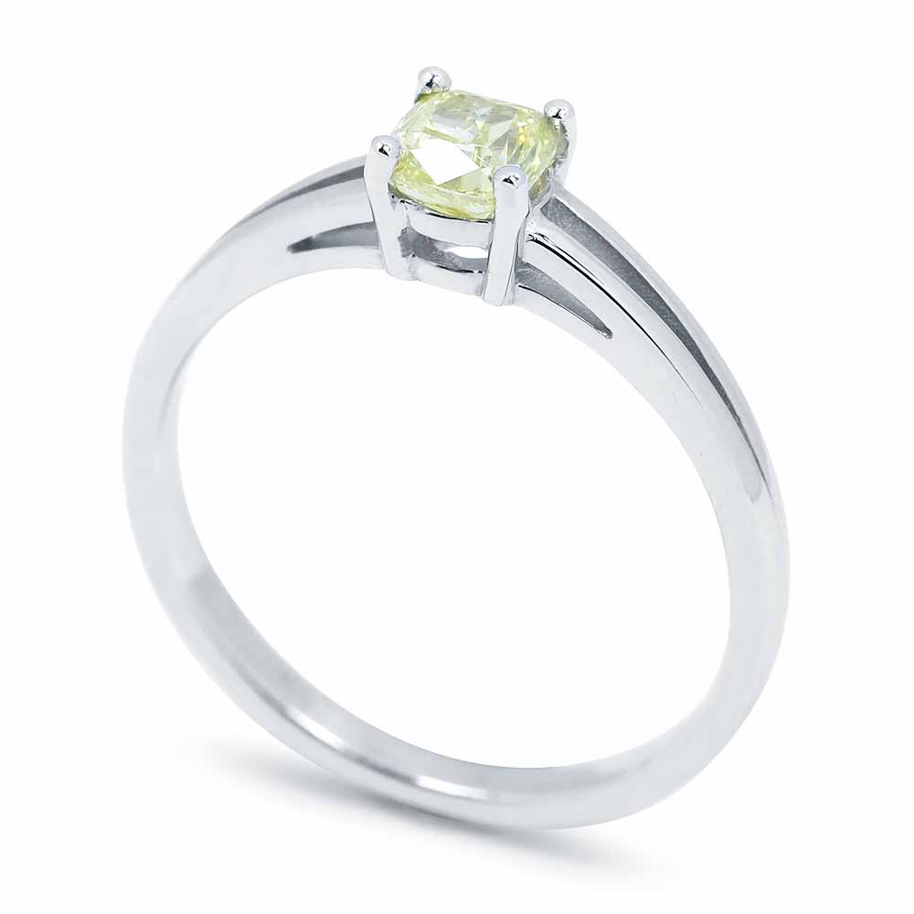 White & Black Solitaire: 0,5 Karátos Sárga Cushion Gyémánt Gyűrű - Fehérarany