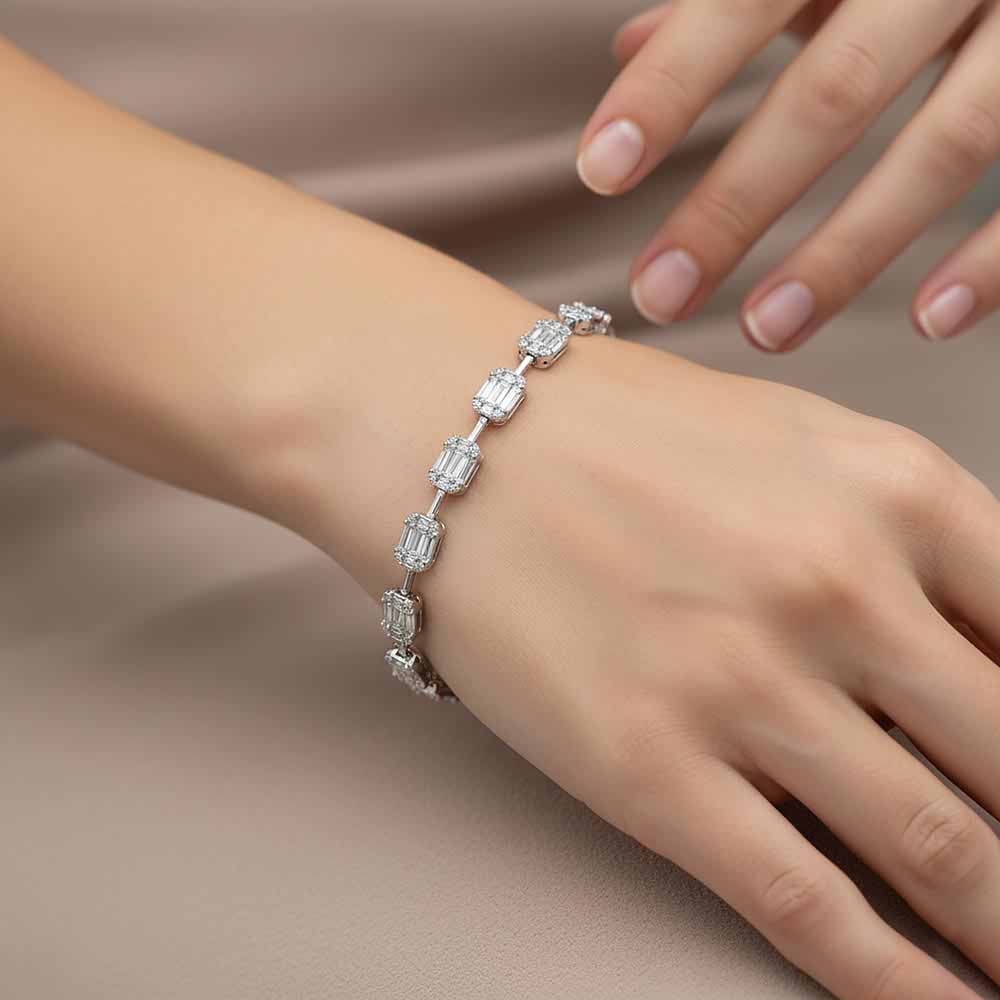 White & Black Signature: Baguette Gyémánt Karkötő Fehéraranyból - 2,45 karát
