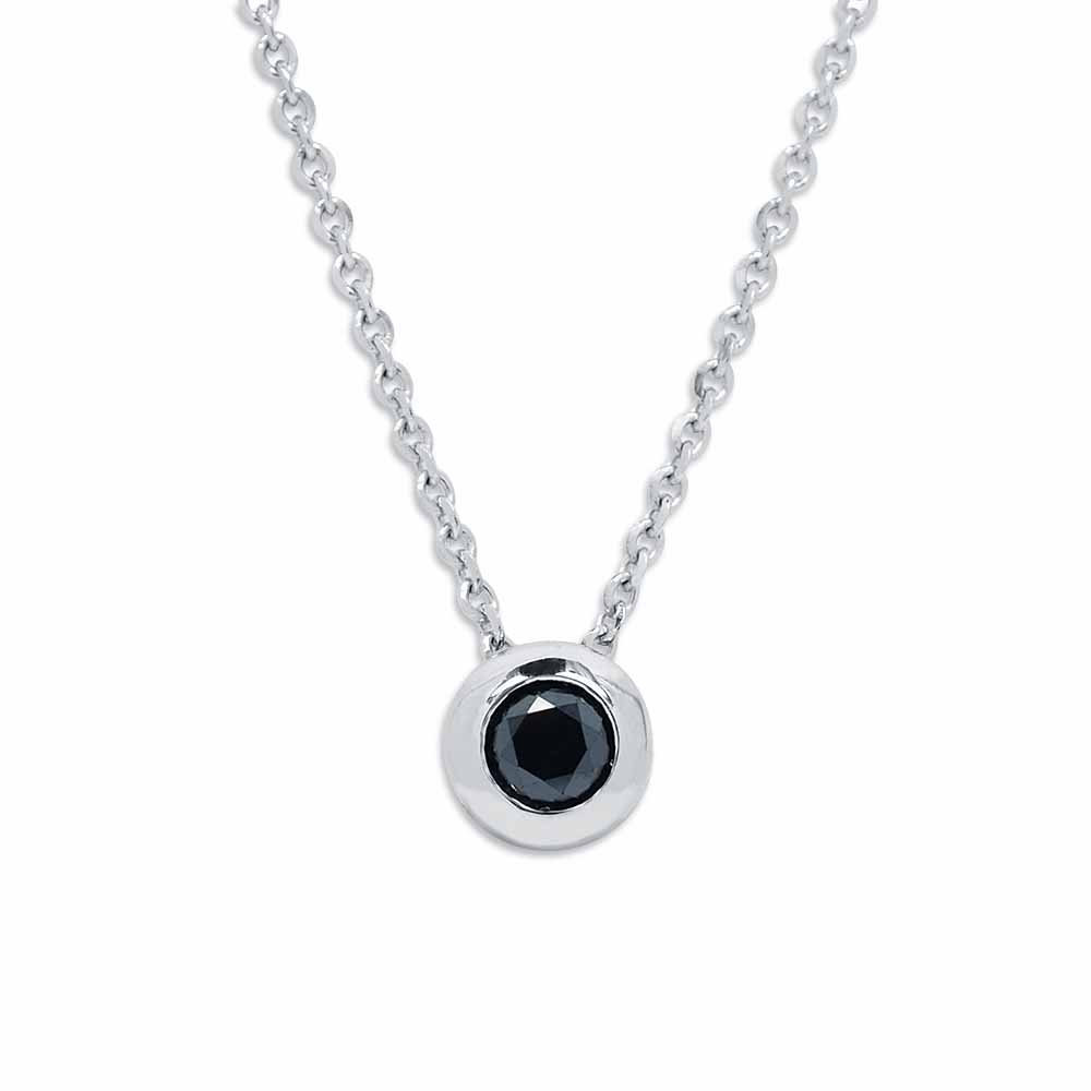 White & Black Classics: Fekete Gyémánt Buton Nyaklánc - Fehérarany