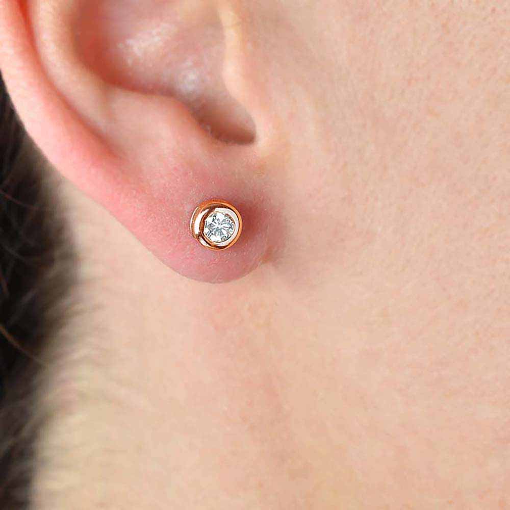 Bouton foglalatos drágakővel díszített gyémánt fülbevaló betűzős zárral - 0,34 karát - rose aranyból