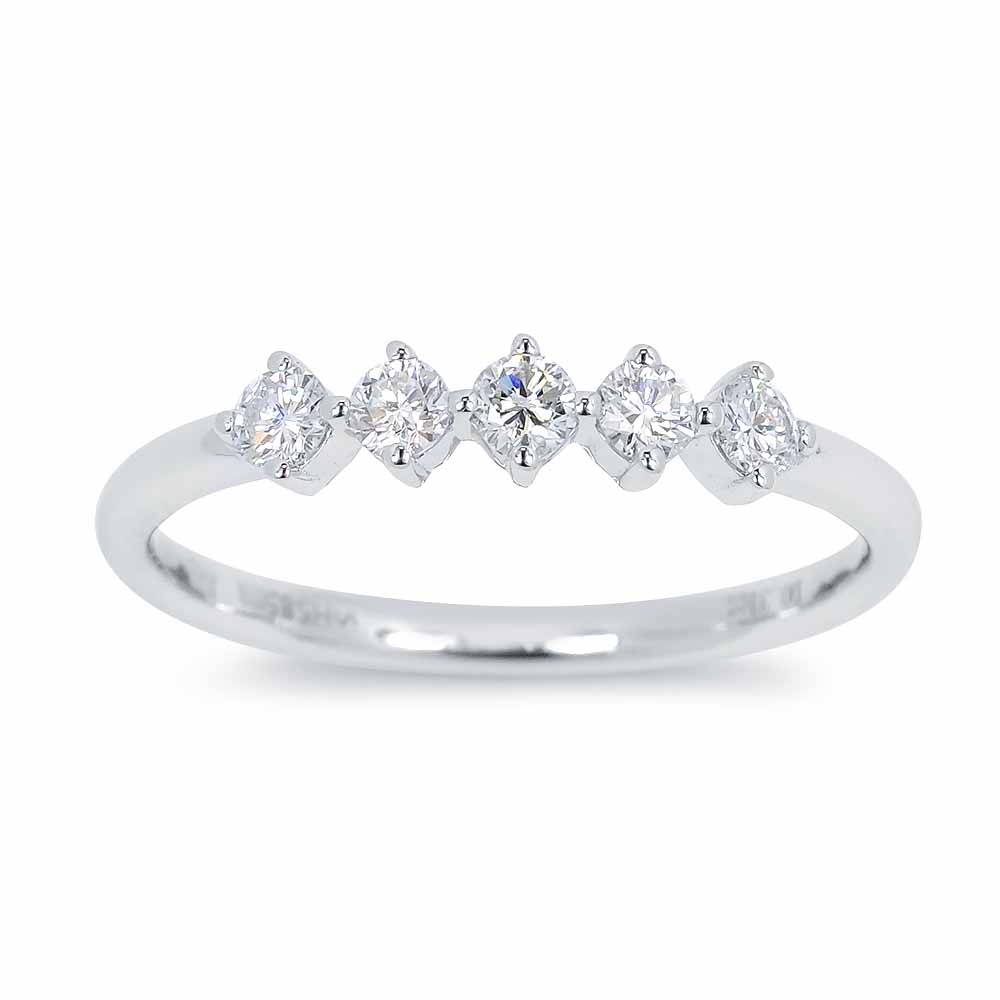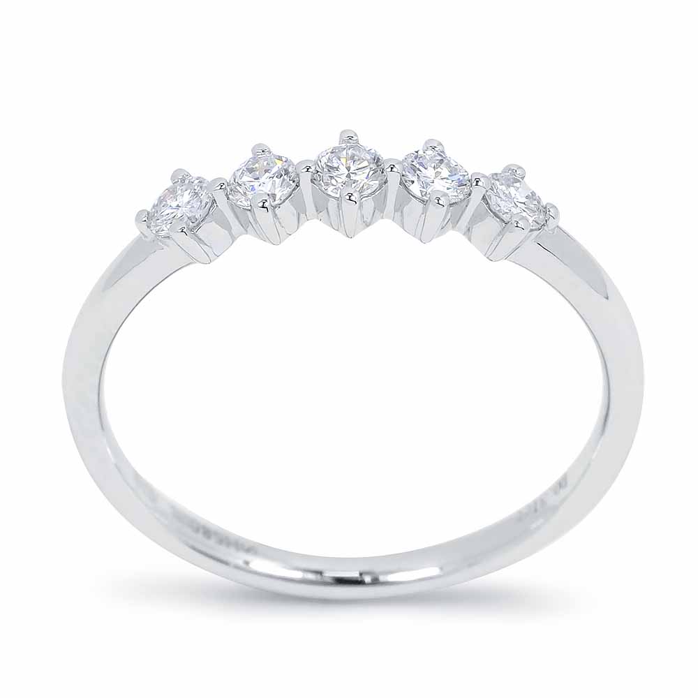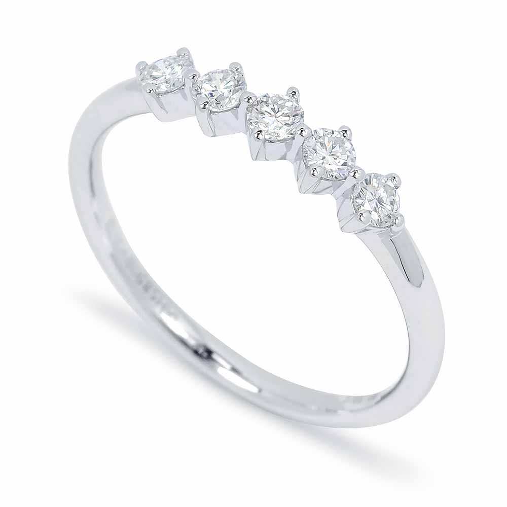 Bogyós mintás 14 karátos fehérarany gyűrű sorban, ívelten kirakva 5 darab gyémánttal - 0,31 karát