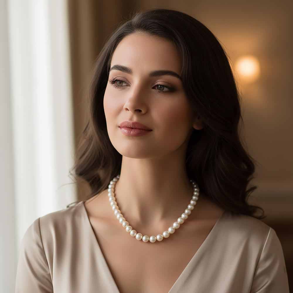 Sósvízi tenyésztett gyöngysor fehérarany zárral - akoya 8-8,5mm - 46cm - AA+