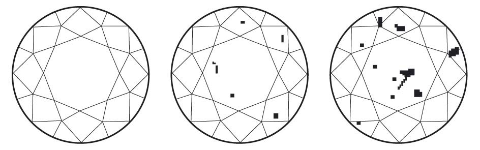 A nemzetközi besorolás az F-től (flawless – hibátlan) az I3-ig (included – zárványos) terjed ékszerekben felhasznált gyémántoknál.