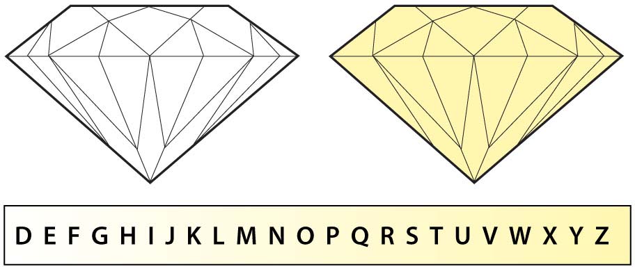 A kövek az ABC betűrendje szerint D-től Z színűig sorolandóak, melyből a D a legszíntelenebb és egyben legritkább, legértékesebb, a Z pedig már a legelszínezettebb, legkevesebbet érő. A gyémánt színét megfelelő nappali fény alatt kell vizsgálni, és összehasonlítani az elfogadott színskálával a pontos meghatározáshoz. Legjobban csak a foglalatból kivéve lehet a kő pontos színét megállapítani.