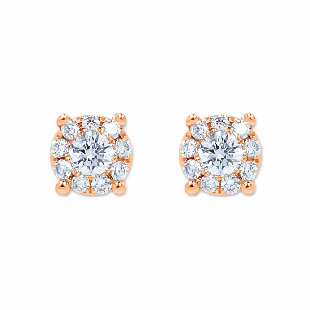 Apró kerek formájú fülbevaló, körbe rakva briliánsokkal, középen pedig egy nagyobb méretű gyémánttal. A fülbevalóban összesen 0,16 karát gyémánt csillog és 14 karátos rose aranyból készült. A gyémántok úgy vannak foglalva, hogy egy nagyobb drágakő hatását keltik! A gyémánt kövek F színűek és SI1 tisztaságúak. Stekkeres (betűzős) zárral rögzül, a gyémánt fülbevaló pár súlya 0,9 gramm. Keresd a hozzá illő medált is! Készletről elérhető.