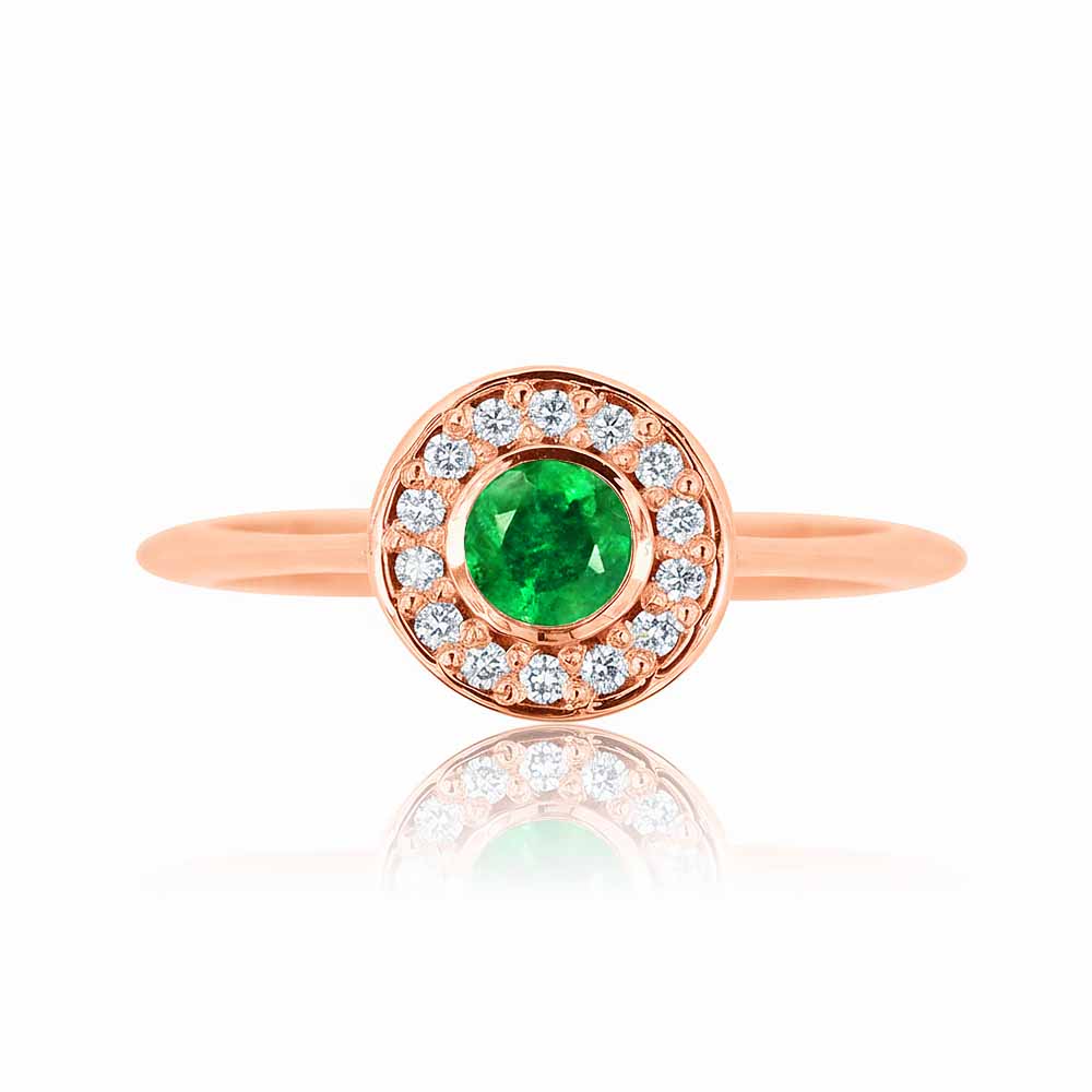 Smaragd és gyémánt köves gyűrű briliánsokkal kirakva, rose aranyból - 0,37 karát