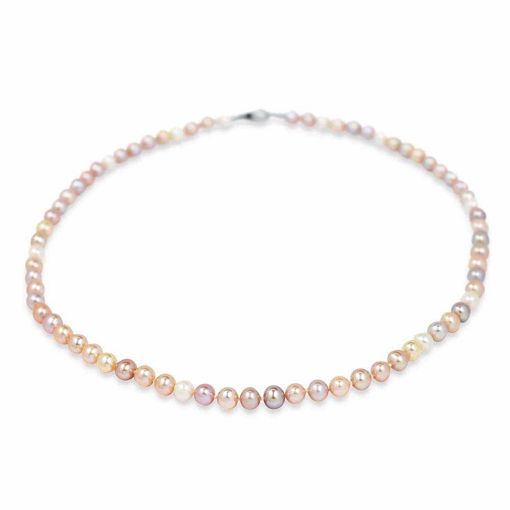 7-7,5mm-es átmérőjű édesvízi többszínű gyöngyökből fűzött sor ezüst zárral