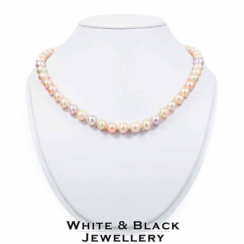 White & Black Pearl: Fűzött Gyöngysor Kerek Multicolor Tenyésztett Gyöngyökből - 7-7,5mm