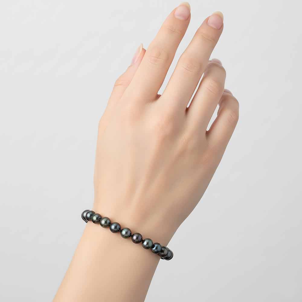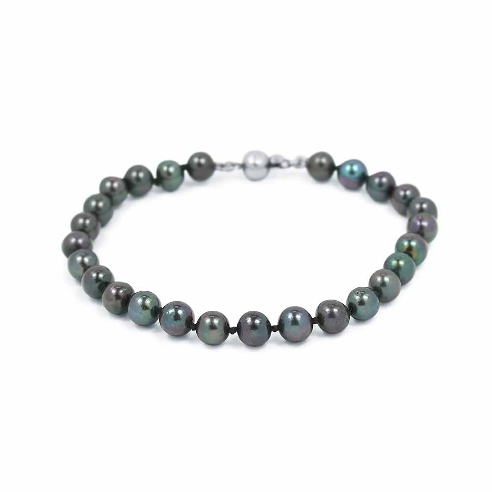 Édesvízi tenyésztett sötét ezüstös gyöngy karkötő ezüst zárral - 6-6,5mm - kifutott