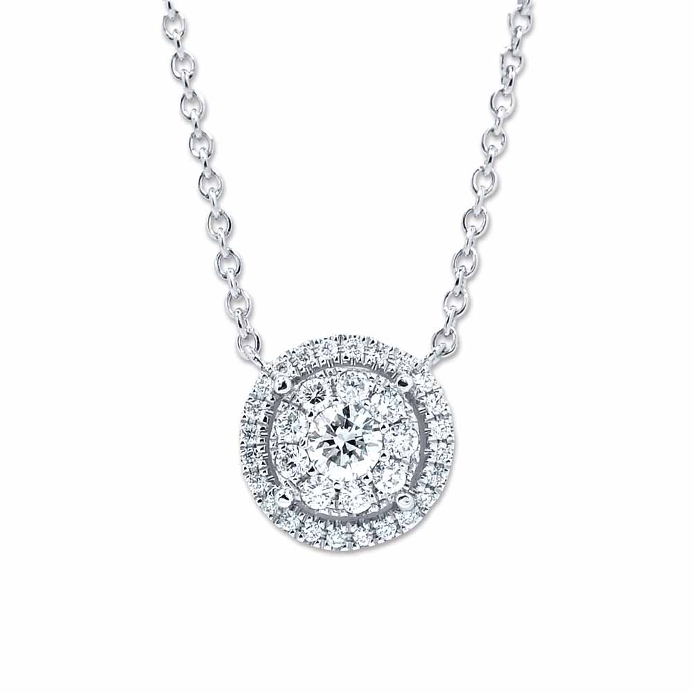 Páratlan, egyedi készítésű gyémánt nyakék, 0,8 karátnyi természetes gyémánt kővel készítve. A kerek medál közepét nagyobb gyémántok alkotják, 9 darab, őket pedig halo (glória) stílusban kisebb gyémántok veszik körül. Minden egyes drágakő kiemelkedő minőségű, így gyönyörű fényjátékkal rendelkezik. A kerek medál átmérője közel 1,5cm, és egy erősebb lánchoz van rögzítve, hogy mindenképp viselője biztonságban tudhassa. A nyaklánc hossza 45cm, de 42cm, 40cm és 38cm-es hossznál is bekapcsolható. A lánc és a medál súlya együtt 4,3 gramm, 14 karátos fehéraranyból készült.