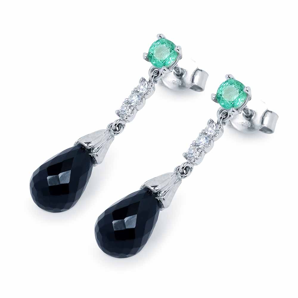 Gyémánt fülbevaló fehéraranyból készítve onix és smaragd drágakövekkel
