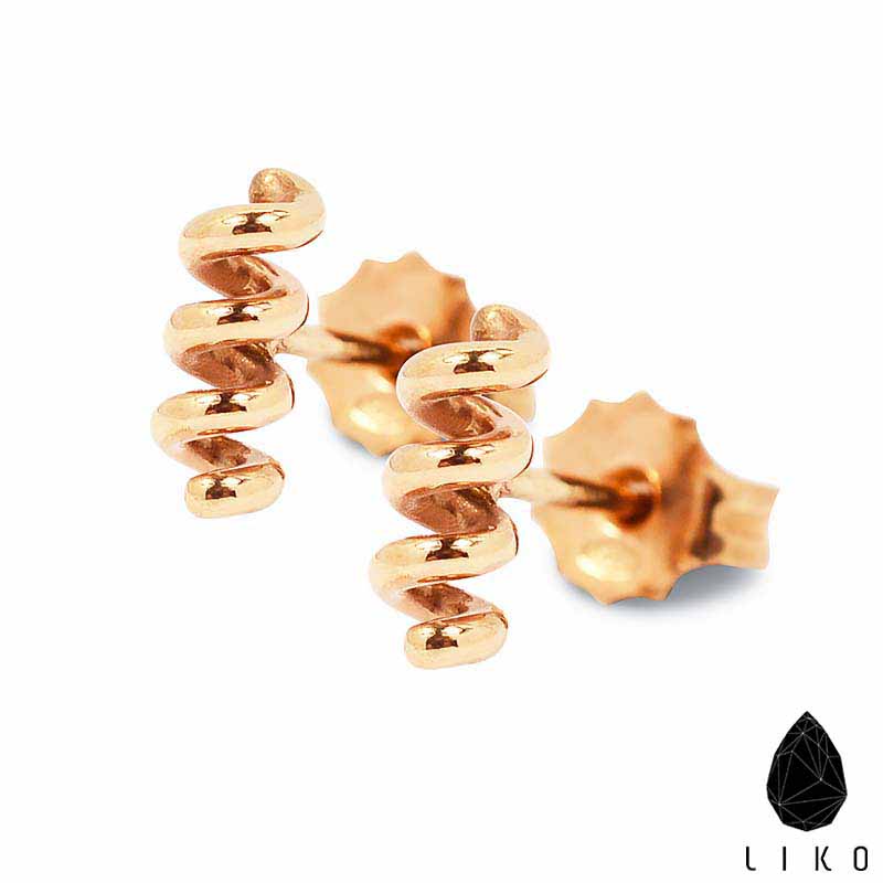 LIKO egyedi fülbevaló 14 karátos rose aranyból. A csavart formájú fülbevaló stekkeres (betűzős) zárral rögzül. Keresd a hozzá illő gyűrűt is! Jelenleg megrendelésre.